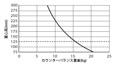 「カウンターバランス域の適正搭載重量」はロックツマミがフリーの状態で、機器の重心高と重量に対して、雲台の発生させるカウンター力でバランス(手を離した際に傾いていかない)することができる重量範囲を表しています。