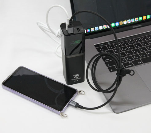 最大140W入出力に対応し、スマートフォンやノートPC、一眼レフ・ミラーレスカメラの外部電源としても使用できます。