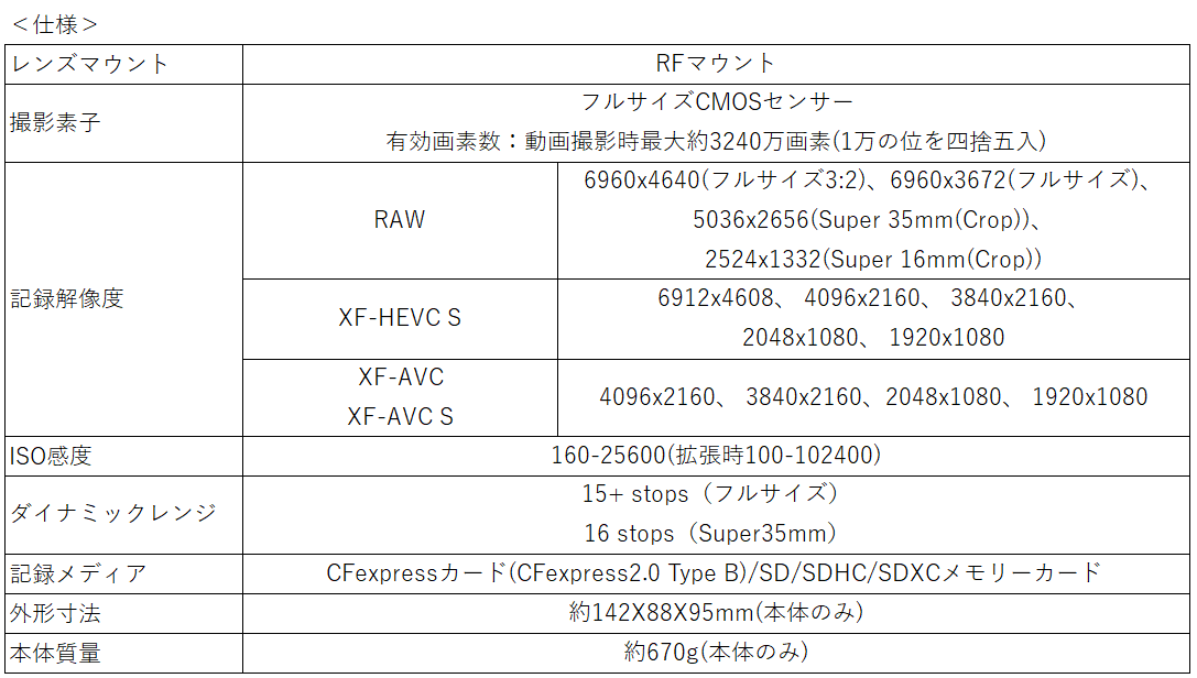 Canon Log 2で撮影時は、フルサイズ時最大15+stops、S35クロップ時16 stopsのダイナミックレンジを活かし、